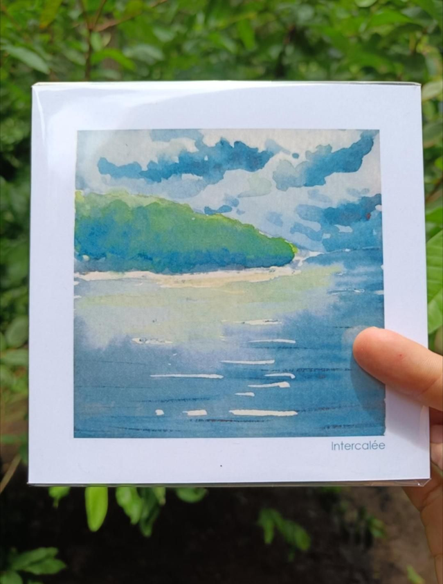 Ilet Chancel - reproduction de l'aquarelle originale inspirée des paysages emblématiques de Martinique, au format carré 13x13 cm sur papier couché 300 g/m2.