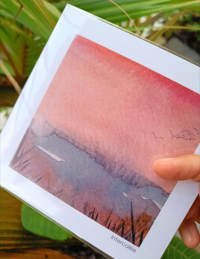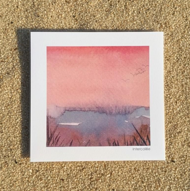 Pink - reproduction de l'aquarelle originale abstraite inspirée des paysages emblématiques de Martinique, au format carré 13x13 cm sur papier couché 300 g/m2.
