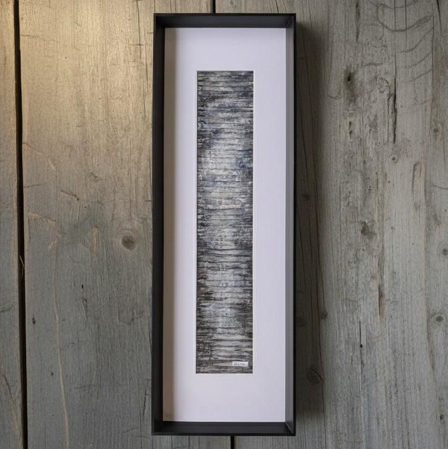 Cette œuvre s'intéresse à la texture patinée des bardages bois, à la fois douce et rugueuse.