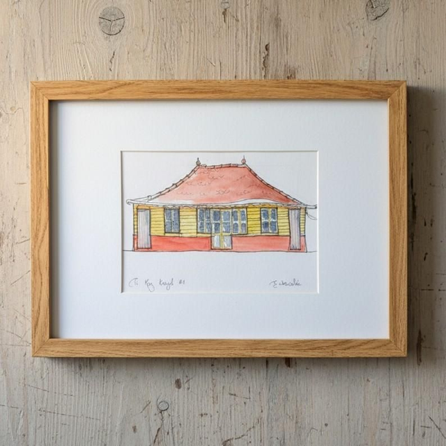 Ti kaz Koulè #1 (Petite case créole couleur) est une oeuvre originale dessinée à l'encre et à l'aquarelle, et réalisée sur papier grain fin 120g/m2.