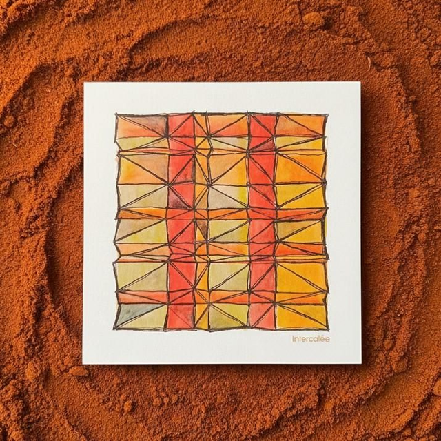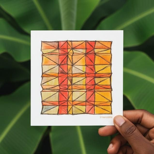 Fondation, série Madras Martinique - reproduction d'un dessin original stylisé à l'encre et à l'aquarelle, proposé au format carré 13x13 cm sur papier couché 300 g/m2.