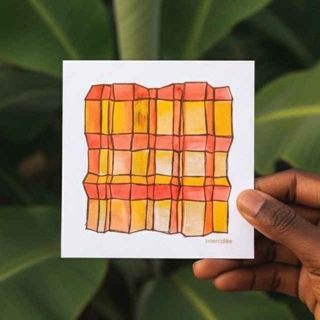 Série Madras Martinique - reproduction du dessin stylisé Le Repli, réalisé à l'encre et à l'aquarelle au format carré 13x13 cm sur papier couché 300 g/m2.