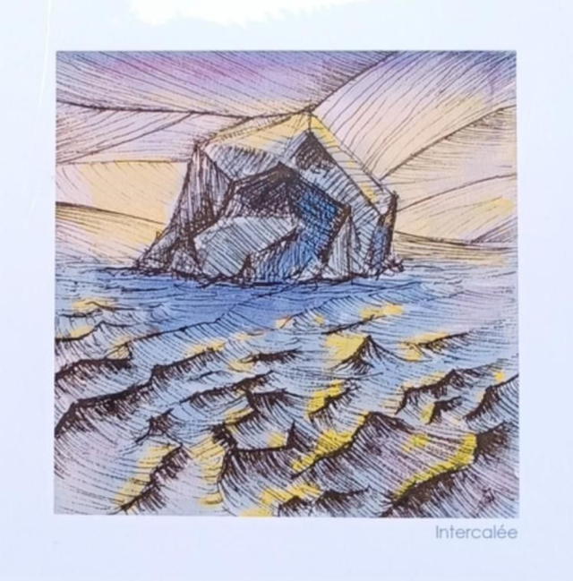 La reproduction du dessin stylisé à l'encre et à l'aquarelle le Rocher du Diamant (Martinique) est proposée au format carré :