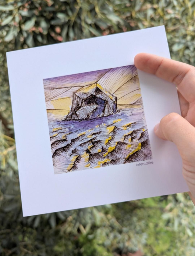 - 15x15cm, sur papier couché 350g/m2, verso carte postale
