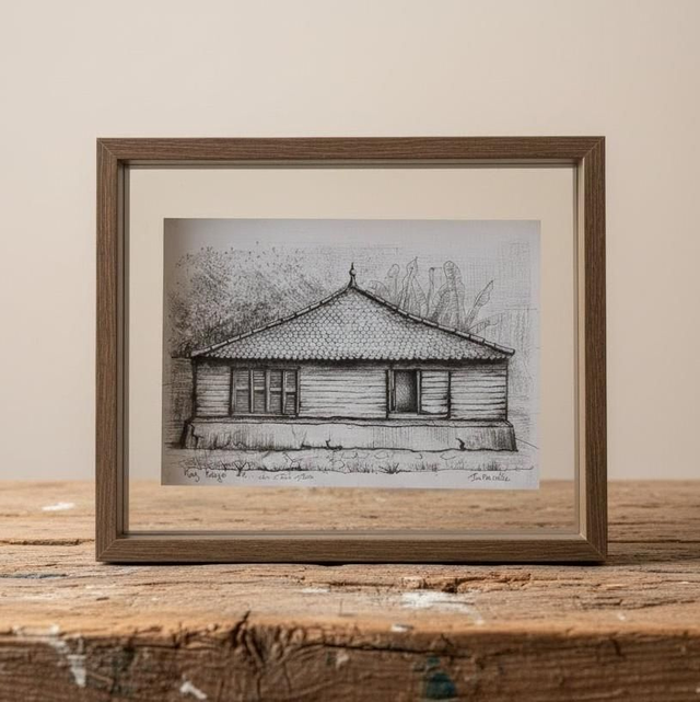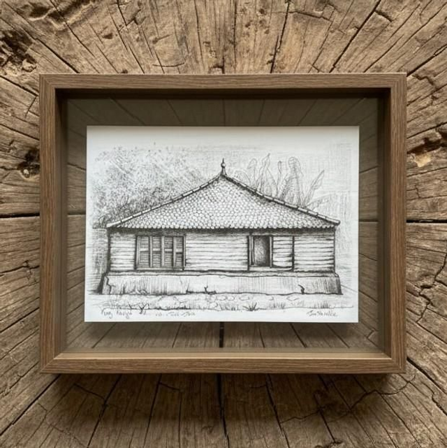 Le dessin à l'encre et au crayon graphite Kaz Kreyol #2 - Les Trois Ilets est une oeuvre originale de format A5 (14,8 x 21cm), réalisée sur papier grain fin 250g/m2. Cadre non inclus.