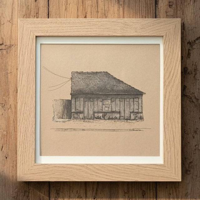 Encre et graphite kraft - case créole #1- Les Trois Ilets - Martinique