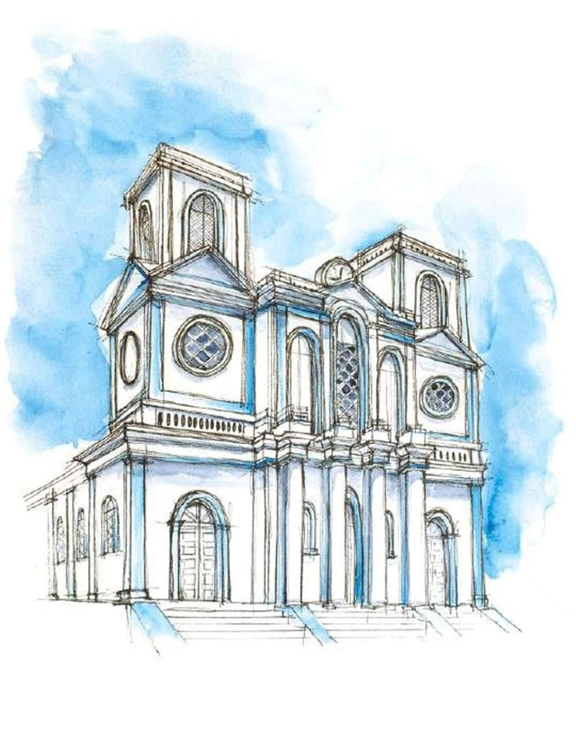 Encre et aquarelle - Église Notre-Dame de l'Assomption - Sainte Marie - Martinique