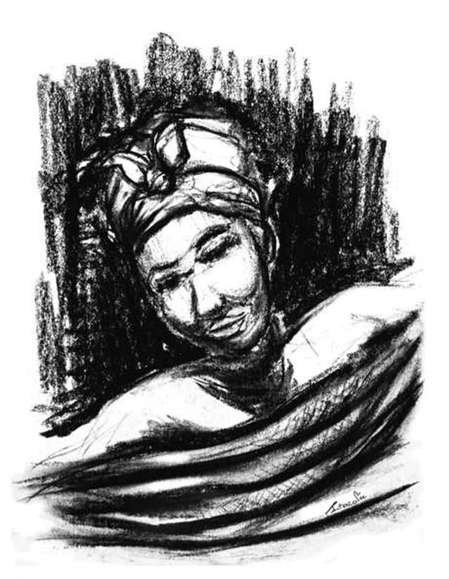Fusain - Le drap