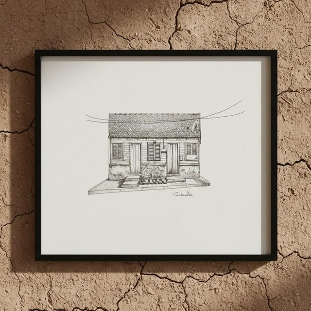 Kaz Kreyol #16 des Trois Ilets (Martinique) - giclée, est une reproduction d'art de l'oeuvre originale réalisée à l'encre et à la mine graphite par Intercalée.