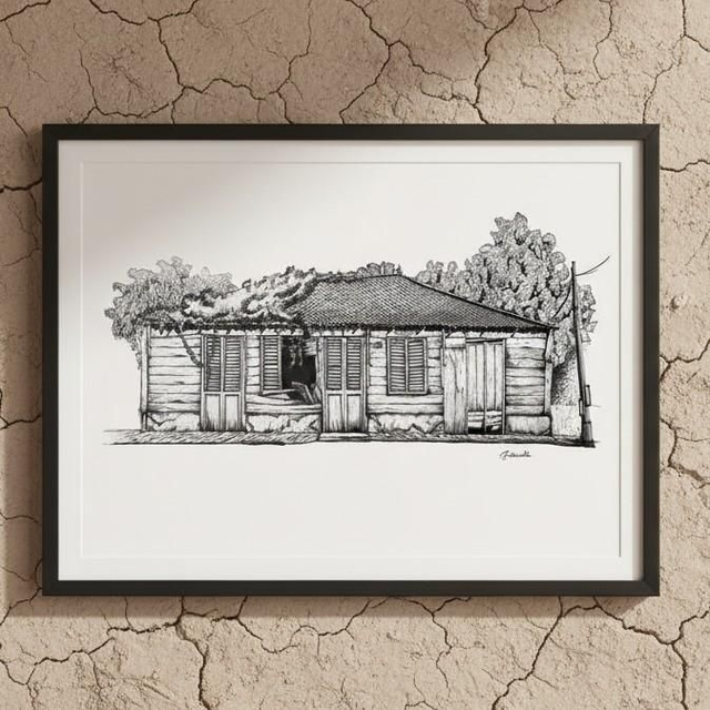 Kaz Kreyol #9 des Trois Ilets (Martinique) - giclée, est une reproduction d'art de l'oeuvre originale réalisée à l'encre et à la mine graphite par Intercalée.